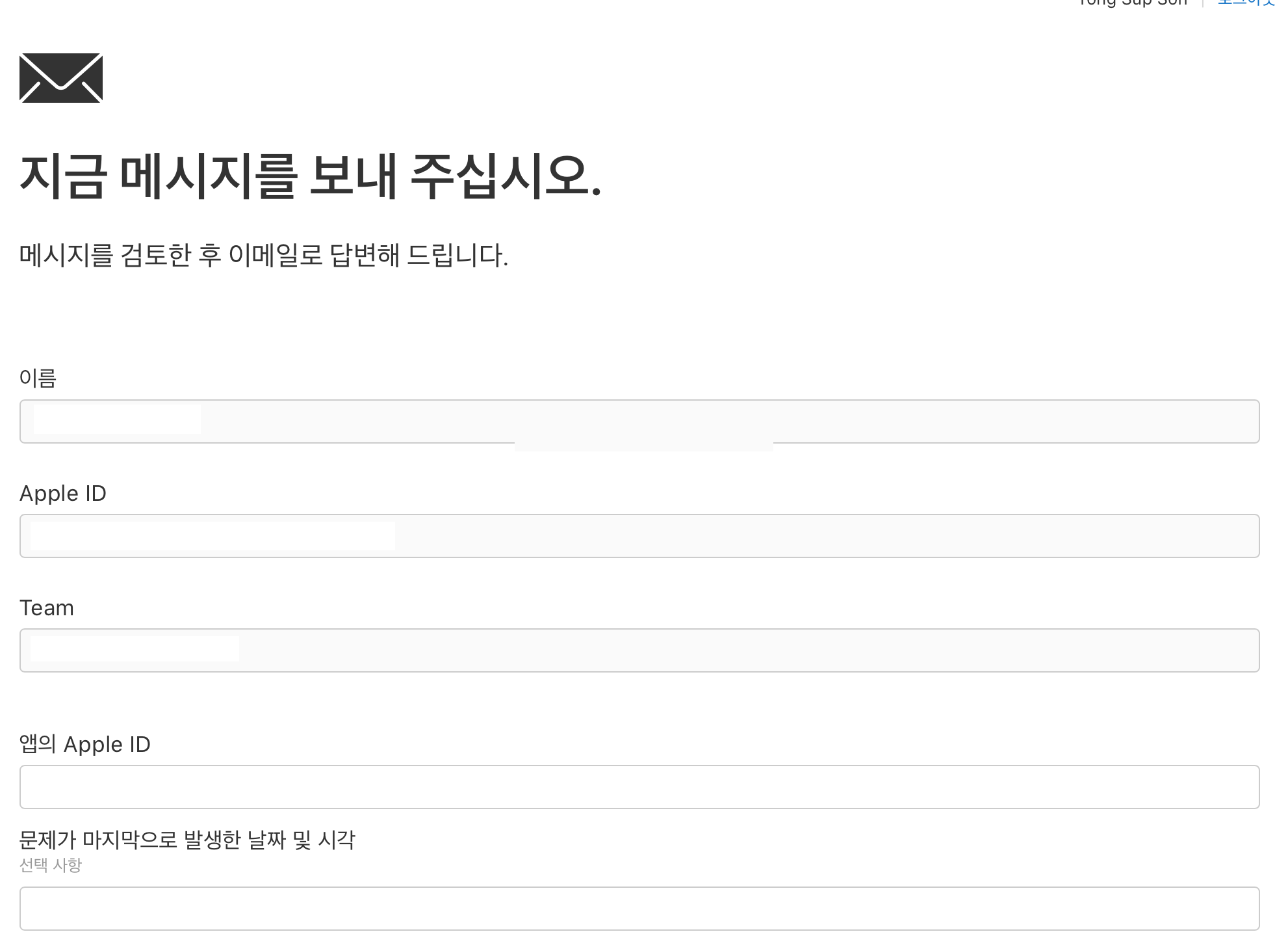 로그인이 되어있어야 하고 :) 아래 항목을 작성해서 보내시면 됩니다. 꼭 성공하시길